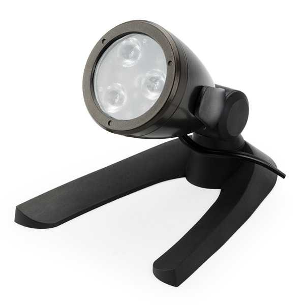 - Include two different mounting platforms: an adjustable stand and a landscape stake