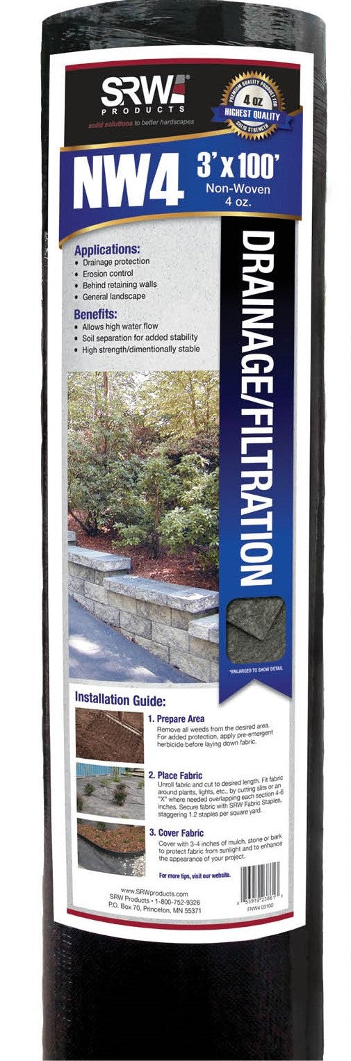 Drainage and Filtration Fabric, Non-Woven, 4 oz