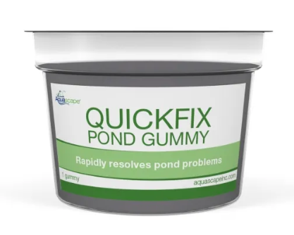 The Aquascape QuickFix Pond Gummy is an all-in-one treatment solution for a variety of pond problems. The innovative gummy makes for quick and easy application, dissolving slowly as the treatment is released.